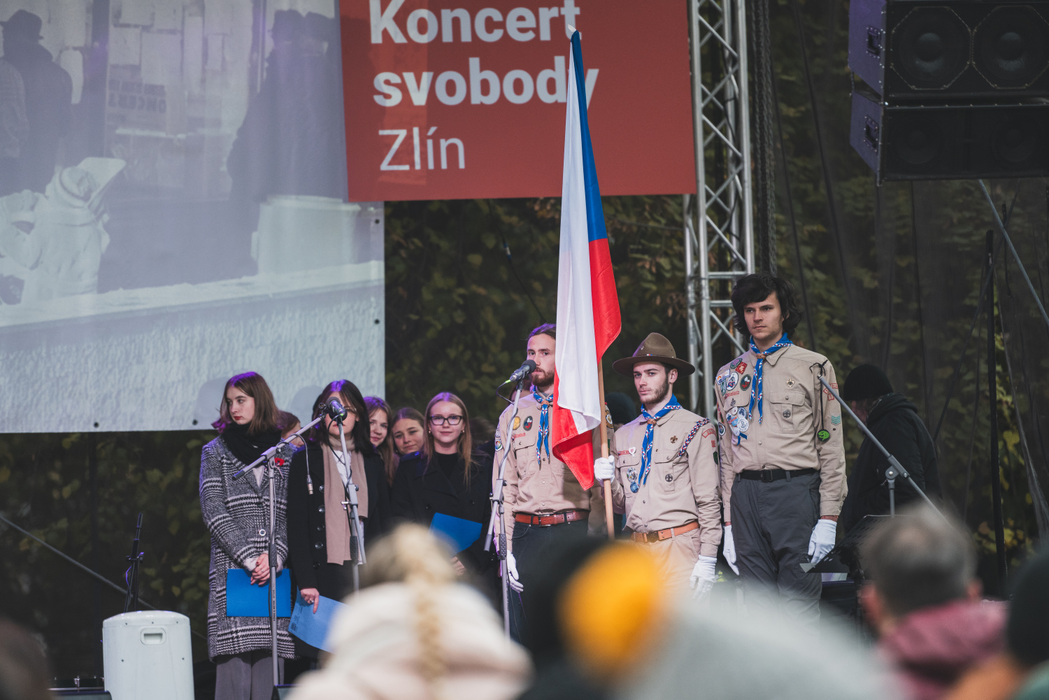 V neděli 17. 11. jsme si na nám. Míru připomenuli 35. výročí sametové revoluce a oslavili Den boje za svobodu a demokracii a Mezinárodní den studentstva. Zahrály kapely Blues Station, Cestující hudba a Franc Alpa. Nechyběly ani vzpomínky pamětníků listopadu 1989 ve Zlíně a dalaší projevy. Modlitbu pro Martu zazpívala herečka Městského divadla Zlín Helena Čermáková, studentskou hymnu Gaudeamus Igitur studenti Gymnázia a jazykové školy Zlín na nám. TGM. Za pomoc a čestnou stráž děkujeme Skautskému institutu ve Zlíně.