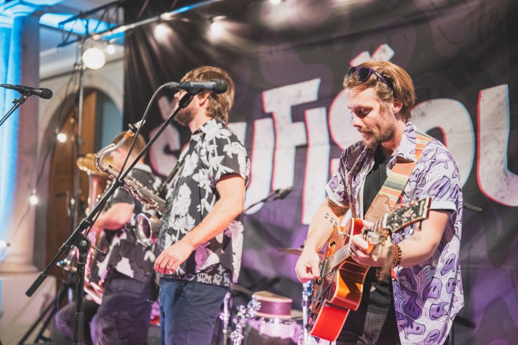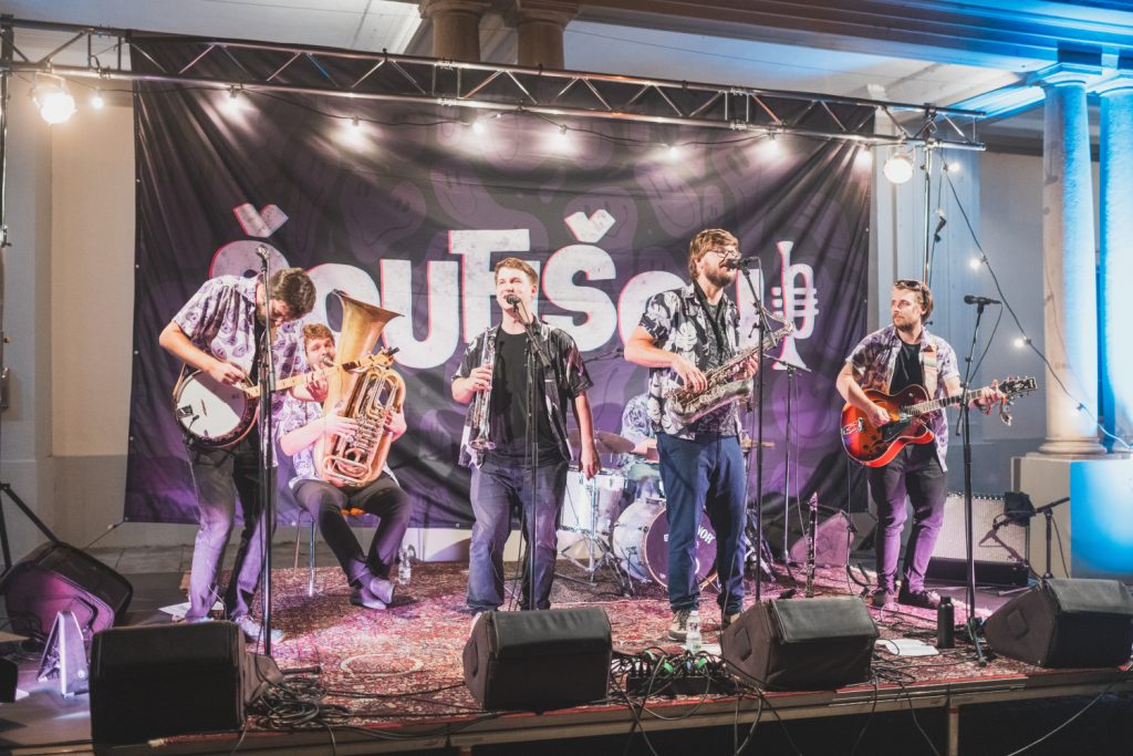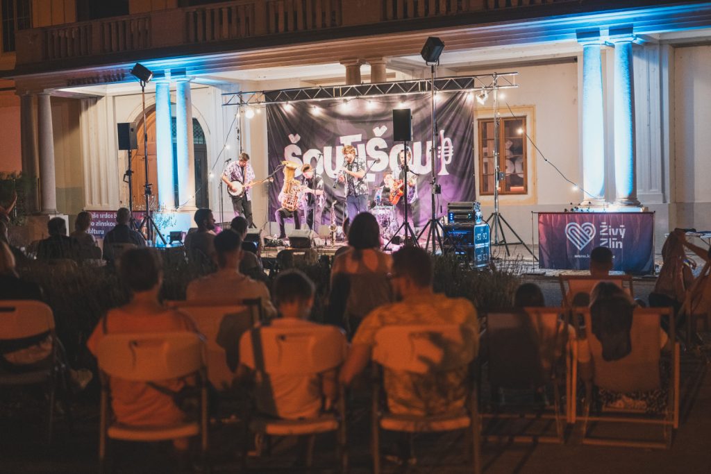 Páteční večer 29. 8. patřil u zlínského zámku skvěle vyladěné Šouflšou. Kapela slibovala, že jazz není nuda… a svůj slib naplnila vrchovatě! Chytlavé melodie, vtipné texty a příjemná letní atmosféra – líp jsme letní sezónu u zámku zakončit nemohli.