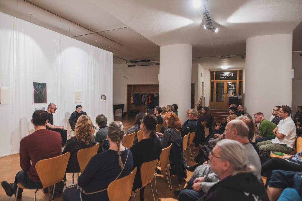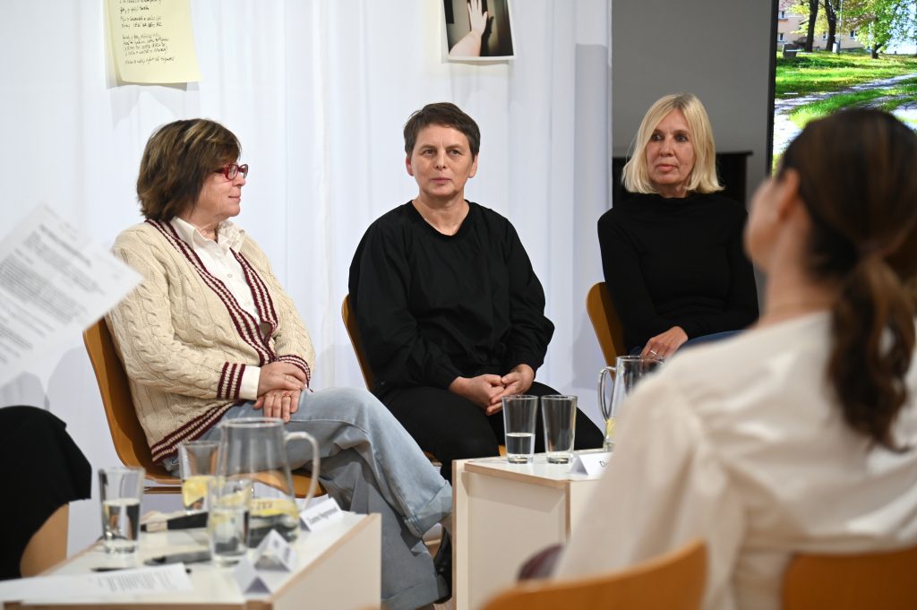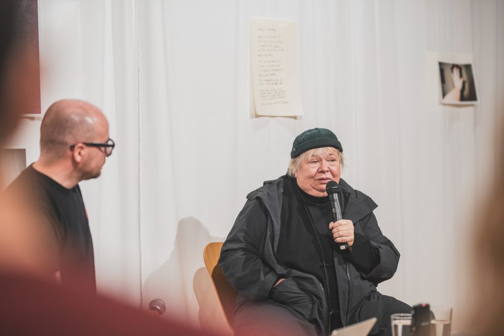Beseda se uskutečnila v kulisách výstavy Libuše Jarcovjákové a Vladimíra Jarcovjáka Make Some Space, která je k vidění až do 17. 11. 2025.