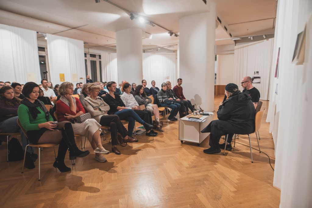 Vyprodaný Kolektiv.Haus přivítal 14. 10. fotografku Libuši Jarcovjákovou. V kulisách své výstavy Make Some Space besedovala s návštěvníky nejen o své práci, nominaci na Oscara za snímek Ještě nejsem, kým chci být, ale i o svém vztahu ke Zlínu, kde trávila v rodinné vile na Kvítkové 668 u prarodičů celé prázdniny.