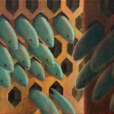 V malířské tvorbě se Aimee soustředí na témata prezervování pocitů a esence života. Jedním z klíčových symbolů se pro ni stala forma ryby jako fluidního a neuchopitelného podvědomí. Tuto symboliku představuje v sérii The Force of Thought Becomes Distort (Síla myšlenky se tříští); v druhé sérii Echoes (Ozvěny) pak tento motiv propojuje s metafyzickými prostory a doplňuje o tvary připomínající vejce či semena, symbolizující naději a znovuzrození. Výstava Displaced (Jinde) obě série spojuje a akcentuje existenciální pocit vykořenění a proměny.