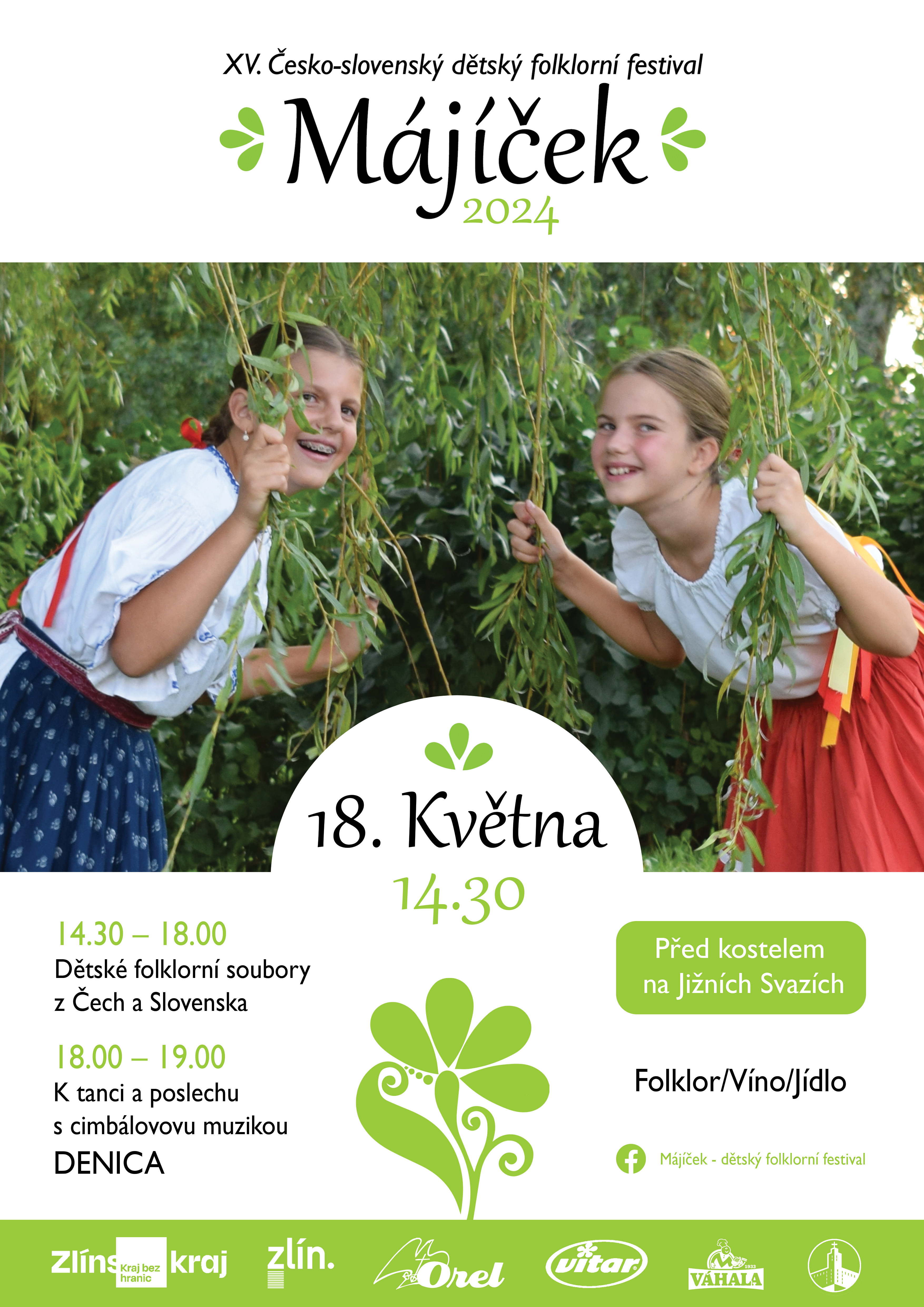 V sobotu 18. května nás čeká už 15. ročník Česko-slovenského dětského folklorního festivalu Májíček.Ve 14:00 krojovaný průvod z Kocandy na Jižních Svazích přes Centrální park směrem ke kostelu.