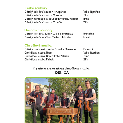 Účinkující: Dětské folklorní soubory České republiky Krušpánek z Velké Bystřice, Vonička ze Zlína, Brněnský Valášek z Brna, Trnečka ze Zlína, Dětská cimbálová muzika Strunka z Domanína, ze Slovenské republiky Turiec z Martina, Lúčka z Bratislavy.