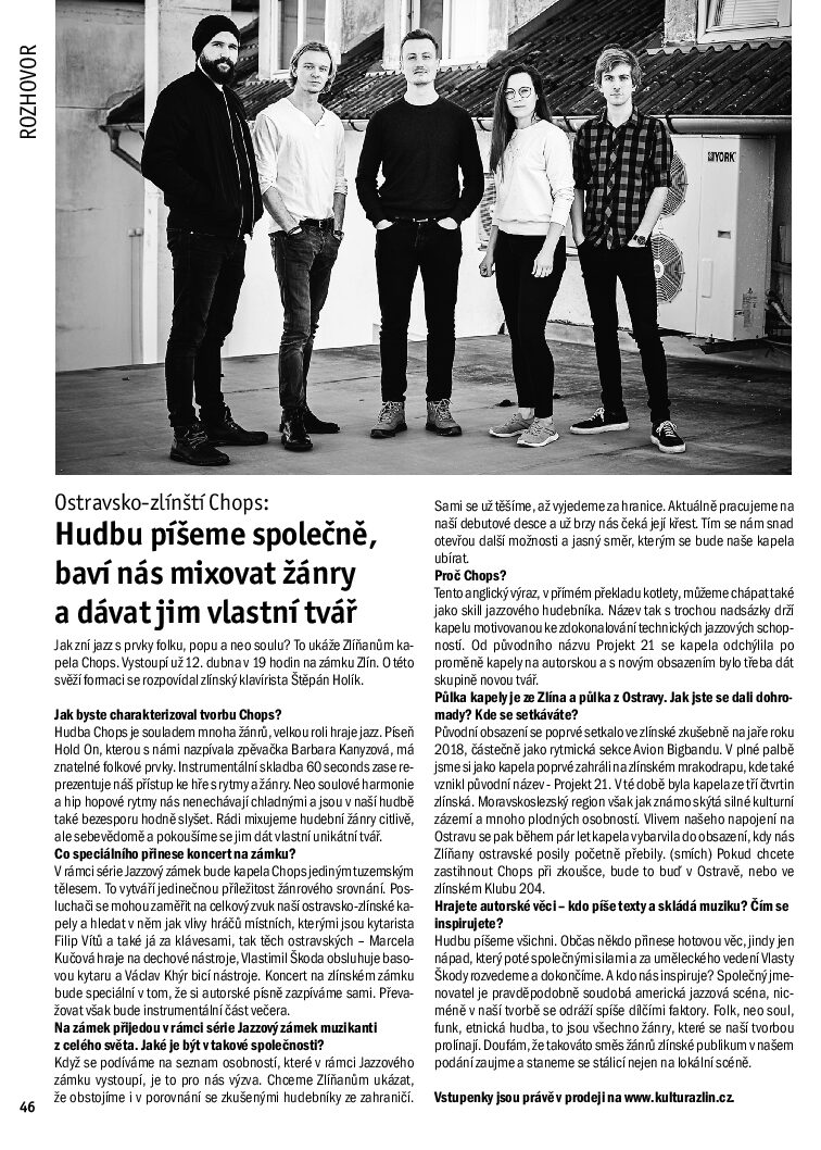 Druhou formací ze série Jazzový zámek Zlín bude kapela Chops.