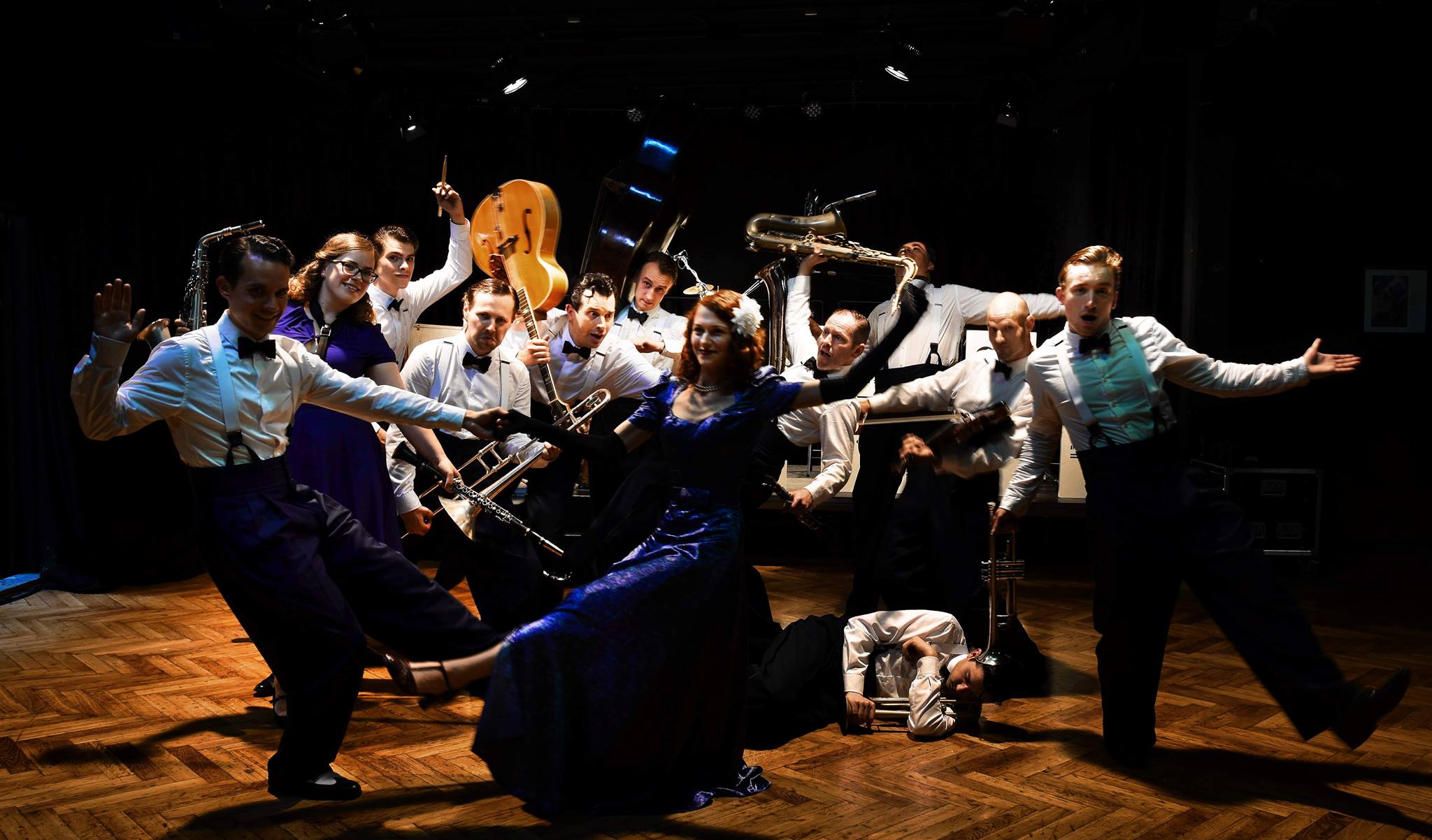 big band hrající čistokrevný taneční swing přelomu 30. a 40. let